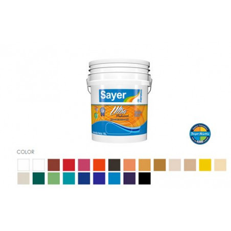Pintura 100% acrílica con poliuretano, de atractivo acabado satinado y mate; formulada para todo tipo de interiores y exteriores. Con gran poder cubriente en seco y 100% lavable. Ideal para comedores, salas, recámaras, oficinas en general, hoteles, hospitales y restaurantes. No deja olor al secar y adhiere sobre yeso, tabique, tablaroca, concreto, aplanado, mampostería y madera. Con Sayer Palette se pueden obtener más de 6,000 colores. Adicionalmente, cuenta con básicos para igualado y colores directos de moda.